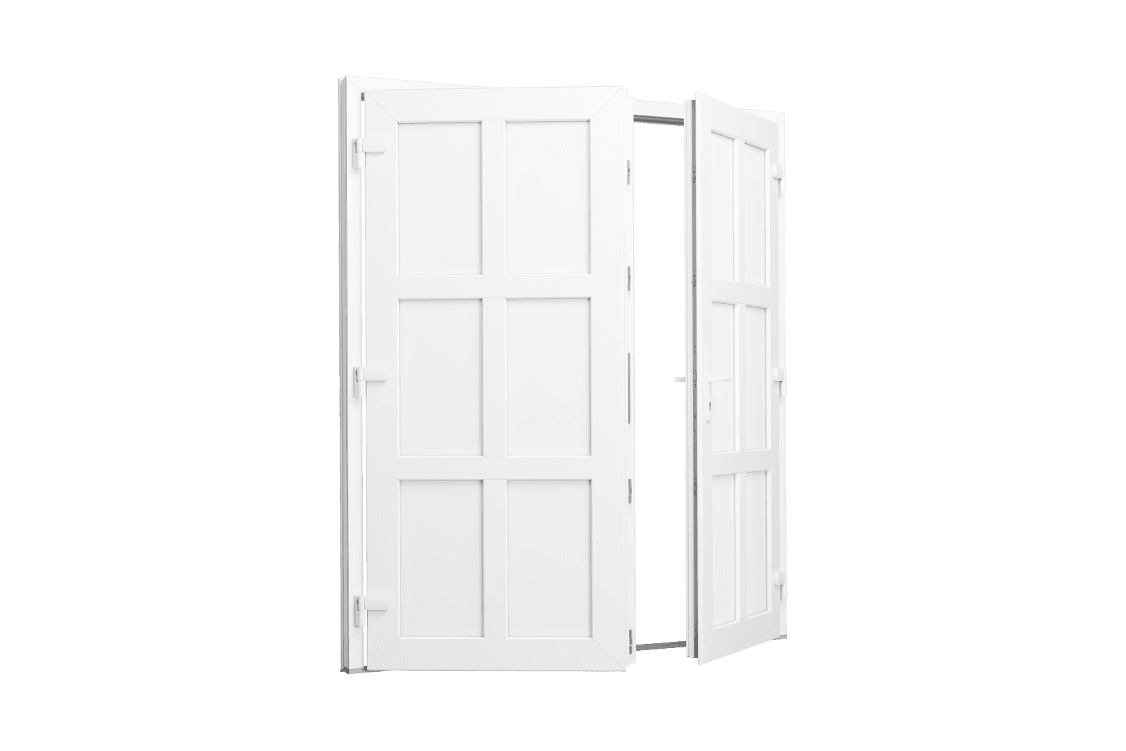 Divviru ārdurvis ar 4 horizontāliem un 6 vertikāliem šķērsiem, ar 12 PVC pildījumiem