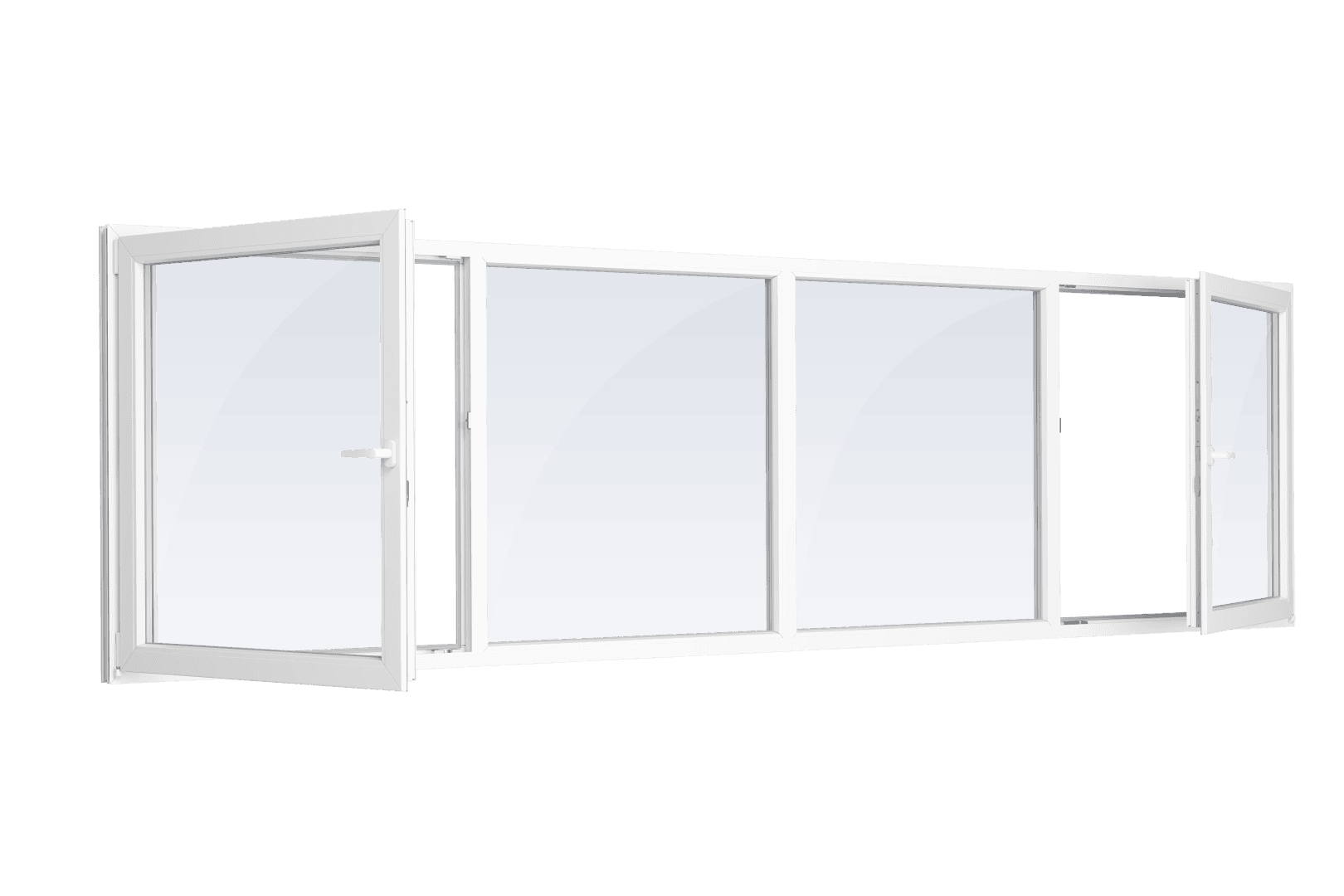 Četrdaļīgs logs ar divām vērtnēm sānos