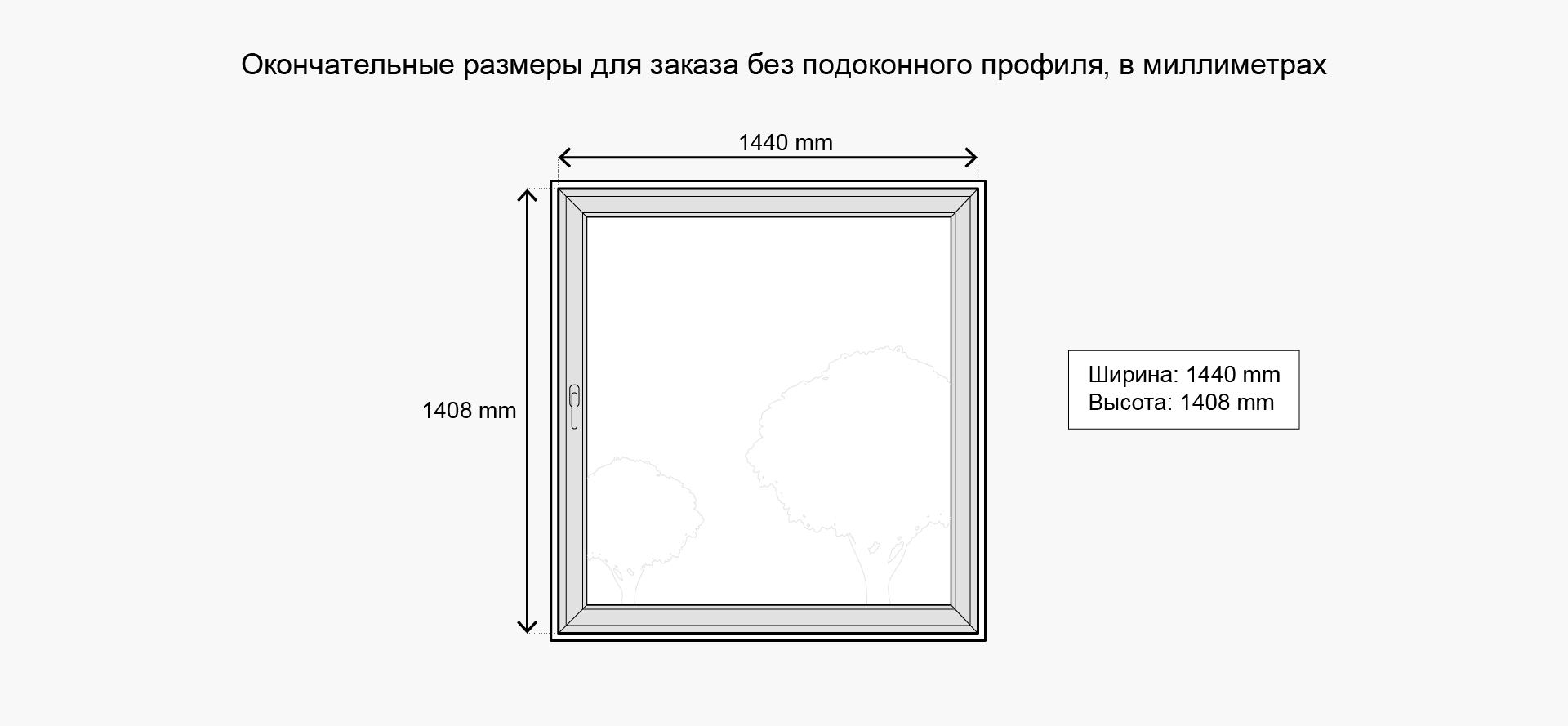 Согласно примеру, ширина заказываемого окна – 1440 мм, а высота - 1408 мм.